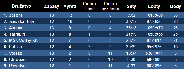 8. TatraLift - Spišská Belá 0:3 (-11,-19,-22)